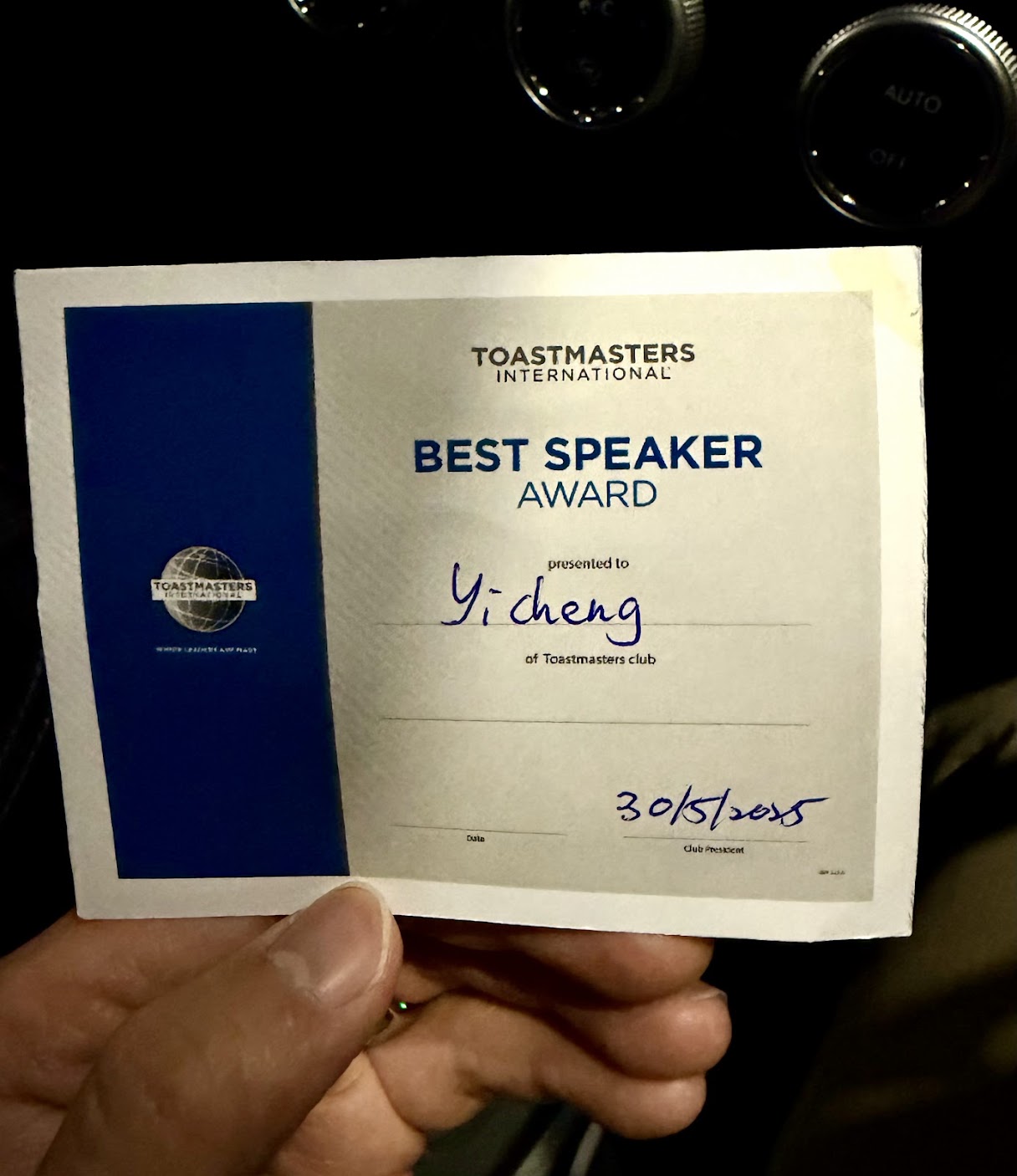I have been attending Toastmasters International for a while now, working to improve my public speaking confidence. Recently, I was honored to receive the best speaker award from our last meeting.