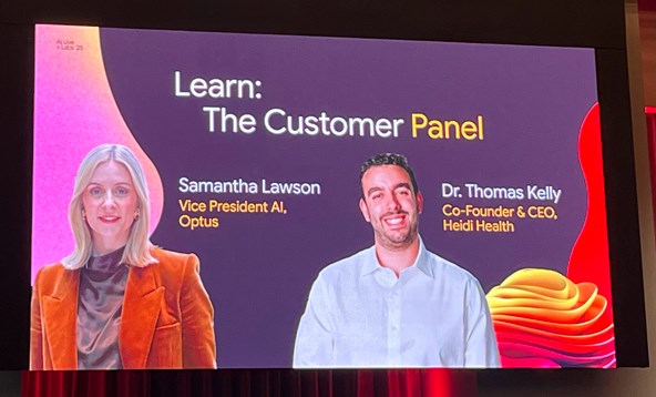 The panel brought together two Google Cloud customers—Optus (an enterprise) and Heidi Health (a startup)—to share how they’re using AI in production.